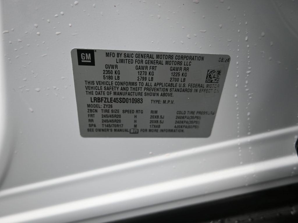 - Tires, P245/45R20 all-season