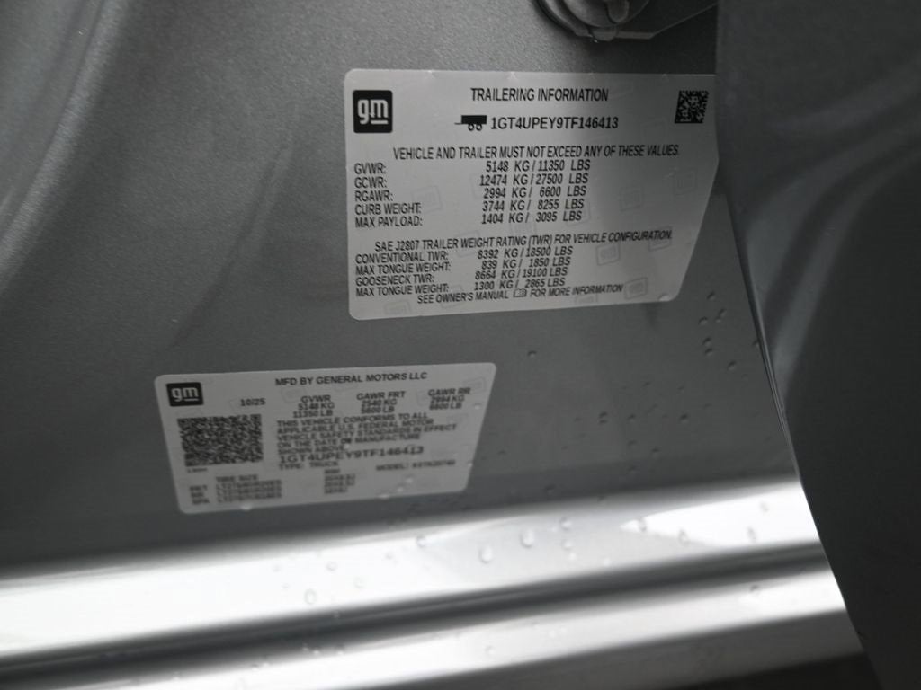 Sterling Metallic 2026 GMC Sierra 2500HD AT4 4WD 10-Speed Automatic Duramax 6.6L V8 Turbodiesel 10-Speed Automatic, 4WD, Jet Black With Kalahari Accents Leather, 10-Way Power Driver Seat Adjuster with Lumbar, 10-Way Power Passenger Seat Adjuster with Lumbar, 120-Volt Bed Mounted Power Outlet, 120-Volt Instrument Panel Power Outlet, 1st and 2nd Rows All-Weather Floor Liners, 2 Charge-Only Rear USB Ports, 2 Charge/Data USB Ports Inside Center Console, 2 USB Ports, 2-Speed Active Transfer Case, 220-Amp Alternator, 4-Wheel Disc Brakes, 7 Speakers, ABS brakes, Air Conditioning, Alloy wheels, AM/FM radio: SiriusXM with 360L, Apple CarPlay/Android Auto, AT4 Preferred Package, Auto High-beam Headlights, Auto-dimming door mirrors, Auto-dimming Rear-View mirror, Automatic Emergency Braking, Automatic temperature control, Bed View Camera with Two Trailer Camera Provisions, Bose Premium 7-Speaker Sound System, Brake assist, Buckle to Drive, Bumpers: body-color, Compass, Deep-Tinted Glass, Delay-off headlights, Driver door bin, Driver Memory, Driver vanity mirror, Dual front impact airbags, Dual front side impact airbags, Electric Rear-Window Defogger, Electronic Stability Control, Emergency communication system: OnStar, Engine Block Heater, Exhaust Brake, Floor-Mounted Center Console, Following Distance Indicator, Forward Collision Alert, Front anti-roll bar, Front Bucket Seats, Front Center Armrest, Front dual zone A/C, Front fog lights, Front Pedestrian Braking, Front Premium Floor Liners with Removable Carpet Insert, Front Rain-Sensing Wipers, Front reading lights, Front wheel independent suspension, Fully automatic headlights, Gloss Black Header Grille and Grille Insert Bars, Gooseneck/5th Wheel Prep Package, HD Surround Vision, Heated 2nd Row Outboard Seats, Heated door mirrors, Heated Driver and Front Outboard Passenger Seats, Heated front seats, Heated rear seats, Heated steering wheel, Heavy-Duty 80 Amp Battery, Hill Descent Control, Hitch Guidance with Hitch View, Illuminated entry, in-Vehicle Trailering System App, IntelliBeam Automatic High Beam on/Off, Keyless Open and Start, Lane Departure Warning System, LED Cargo Area Lighting, LED Smoked Amber Roof Marker Lamps, Low tire pressure warning, Manual Tilt-Wheel/Telescoping Steering Column, Memory seat, MulitPro Audio System by Kicker, Occupant sensing airbag, Off-Road Suspension, OnStar Services Capable, Outside temperature display, Overhead airbag, Overhead console, Panic alarm, Passenger door bin, Passenger vanity mirror, Perforated Leather-Appointed Front Seat Trim, Pickup Box, Power door mirrors, Power driver seat, Power Front Passenger Windows with Express Up/Down, Power passenger seat, Power Sliding Rear Window with Defogger, Power steering, Power Sunroof, Power windows, Preferred Equipment Group 4SB, Premium audio system: Premium GMC Infotainment System, Push Button Start, Radio: AM/FM Stereo with Premium GMC Infotainment System, Rain sensing wipers, Rear Cross Traffic Alert, Rear Premium Floor Liners with Removable Carpet Insert, Rear reading lights, Rear seat center armrest, Rear step bumper, Rear Wheelhouse Liners, Rear window defroster, Remote keyless entry, Remote Vehicle Starter System, Safety Alert Seat, Security system, SiriusXM with 360L Trial Subscription, Speed control, Speed-sensing steering, Split folding rear seat, Spray-on Pickup Bedliner with GMC Logo, Steering Wheel Audio Controls, Steering wheel mounted audio controls, Tachometer, Telescoping steering wheel, Tilt steering wheel, Traction control, Trailer Cam Provisions and Trailer Viewing Software, Trailer Side Blind Zone Alert, Trip computer, Turn signal indicator mirrors, Ultrasonic Front and Rear Park Assist, Unauthorized Entry Theft-Deterrent System, Universal Home Remote, Upfitter Switch Kit (5), Variably intermittent wipers, Ventilated Driver and Front Passenger Seats, Ventilated front seats, Voltmeter, Wheels: 20 High Gloss Black 8 Spokes Aluminum