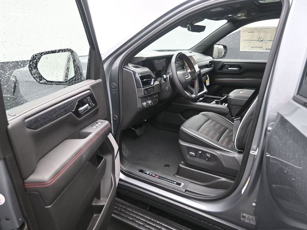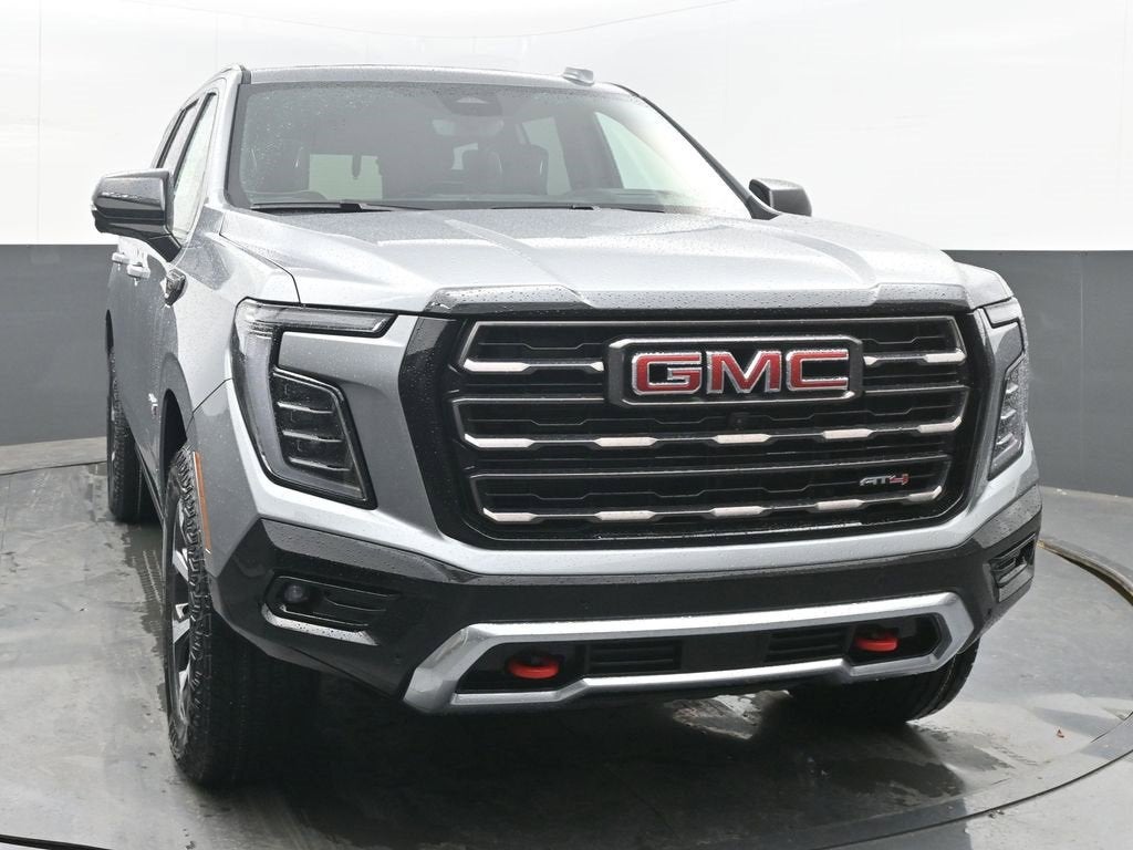 Gray 2026 GMC Yukon AT4 Ultimate 4WD 10-Speed Automatic with Overdrive EcoTec3 6.2L V8 4WD, 15 Diagonal Multi-Color Head-Up Display, 18 Speakers, 1st and 2nd Rows All-Weather Floor Liners, 3 Years OnStar One, 3.23 Rear Axle Ratio, 3rd Row All-Weather Floor Liners, 3rd row seats: split-bench, 4-Spoke Leather-Wrapped Steering Wheel, 4-Way Power Driver Lumbar Seat Adjuster, 4-Way Power Front Passenger Lumbar Seat Adjuster, 4-Wheel Disc Brakes, 8 Diagonal Rear Touchscreen Climate Control, ABS brakes, Adaptive suspension, Advanced Security Package, Advanced Technology Package, Air Conditioning, Air Ride Adaptive Suspension, All-Weather Cargo Mat, Alloy wheels, AM/FM radio: SiriusXM with 360L, Apple CarPlay/Android Auto, AT4 Black Appearance Package, Audio memory, Auto High-beam Headlights, Auto-dimming door mirrors, Auto-dimming Rear-View mirror, Auto-leveling suspension, Automatic temperature control, AutoSense Hands-Free Power Liftgate, Black Nameplates, Black Roof-Mounted Luggage Rack Side Rails, Blind Zone Steering Assist with Trailering, Body-Color Door Handles, Bose 18-Speaker Surround with Centerpoint, Brake assist, Bright Front and Rear Door Sill Plates, Bumpers: body-color, Compass, Delay-off headlights, Driver 2-Way Power Upper Shoulder, Driver Attention Assist, Driver door bin, Driver Power Massage Seat, Driver vanity mirror, Dual Exhaust System, Dual front impact airbags, Dual front side impact airbags, Dual-Pane Panoramic Power Sunroof, Electronic Limited Slip Differential (ELSD), Electronic Stability Control, Emergency communication system: OnStar and GMC connected services capable, Exterior Parking Camera Rear, Extra Capacity Cooling System, Floor Liner Package, Four wheel independent suspension, Front anti-roll bar, Front Bucket Seats, Front Center Armrest, Front dual zone A/C, Front fog lights, Front High-Approach Angle Fascia, Front Passenger 2-Way Power Upper Shoulder, Front Passenger Power Massage Seat, Front reading lights, Full Grain Leather Seats, Fully automatic headlights, Garage door transmitter, Glass Breakage Sensor, Headphones, Heads-Up Display, Heated door mirrors, Heated Driver and Front Passenger Seats, Heated front seats, Heated rear seats, Heated steering wheel, Heavy-Duty Air Filter, Hill Descent Control, Hitch View, Illuminated entry, Illuminated Front Black GMC Emblem, Inside Rearview Auo-Dimming Rear Camera Mirror, Integrated Trailer Brake Controller, Leather steering wheel, Low tire pressure warning, Magnetic Ride Control Suspension, Max Trailering Package, Memory seat, Navigation system: GMC Connected Navigation, Occupant sensing airbag, Outside temperature display, Overhead airbag, Overhead console, Panic alarm, Passenger door bin, Passenger vanity mirror, Perforated Heather and Ventilated Driver and Front Passenger Seats, Power door mirrors, Power driver seat, Power Liftgate, Power moonroof, Power passenger seat, Power Release 2nd Row Bucket Seats, Power steering, Power Tilt and Telescopic Steering Column, Power windows, Power-Retractable Assist Steps, Premium Capability Package with Active Response 4WD, Radio: 16.8 Diagonal Premium GMC Infotainment System, Rain sensing wipers, Rear air conditioning, Rear anti-roll bar, Rear audio controls, Rear reading lights, Rear Seat Media System, Rear window defroster, Rear window wiper, Red Horizontal-Mounted Recovery Hooks, Remote keyless entry, Security system, SiriusXM with 360L, Smart Trailer Integration Indicator, Speed control, Speed-sensing steering, Split folding rear seat, Spoiler, Sport Pedal Cover Kit, Steering wheel memory, Steering wheel mounted audio controls, Super Cruise, Tachometer, Telescoping steering wheel, Theft-Deterrent Alarm System, Tilt steering wheel, Traction control, Trip computer, Turn signal indicator mirrors, Variably intermittent wipers, Vehicle Inclination Sensor, Vehicle Interior Movement Sensor, Ventilated front seats, Voltmeter, Wheel Locks (set of 4), Wheels: 20 x 9 Machined and Painted, 4WD.
