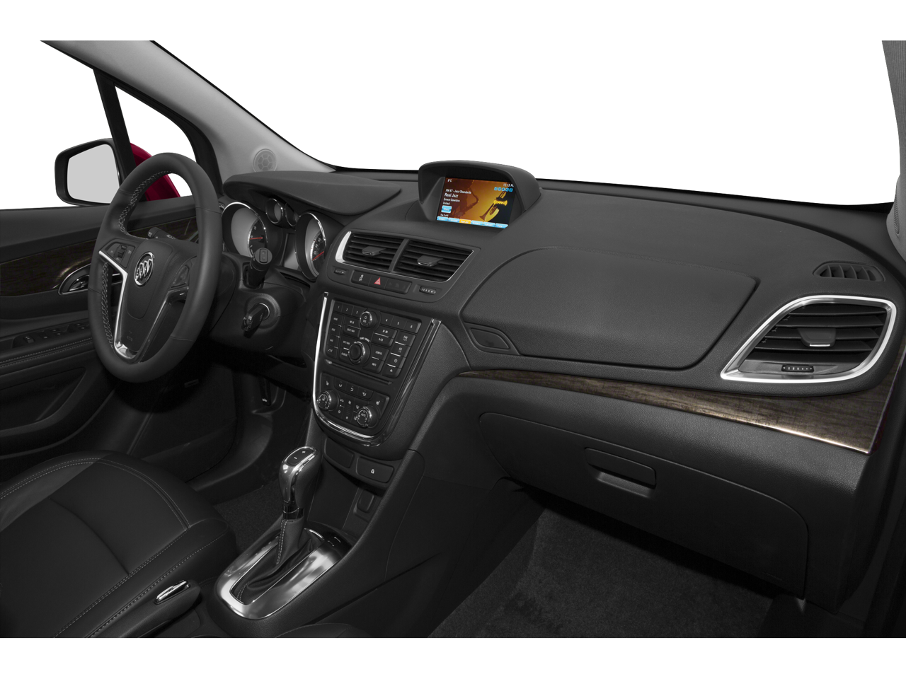 Quicksilver Metallic 2015 Buick Encore 2015 Buick Encore Convenience Convenience FWD 6-Speed Automatic Electronic with Overdrive ECOTEC 1.4L I4 SMPI DOHC Turbocharged VVT 120-Volt Power Outlet, 2-Way Manual Front Passenger Seat Adjuster, 3.53 Final Drive Axle Ratio, 4-Wheel Disc Brakes, 6 Speakers, 6-Way Power Driver Seat Adjuster, ABS brakes, Air Conditioning, Alloy wheels, AM/FM radio: SiriusXM, Auto-Dimming Inside Rear-View Mirror, Auto-dimming Rear-View mirror, Automatic temperature control, Brake assist, Bumpers: body-color, CD player, Compass, Delay-off headlights, Driver door bin, Driver vanity mirror, Driver's Seat Mounted Armrest, Dual front impact airbags, Dual front side impact airbags, Dual-Zone Automatic Climate Control, Electronic Stability Control, Emergency communication system: OnStar Directions & Connections, Exterior Parking Camera Rear, Front anti-roll bar, Front Bucket Seats, Front dual zone A/C, Front Fog Lamps, Front fog lights, Front License Plate Bracket, Front reading lights, Front wheel independent suspension, Fully automatic headlights, Heated door mirrors, Illuminated entry, Knee airbag, Leather steering wheel, Low tire pressure warning, Occupant sensing airbag, Outside temperature display, Overhead airbag, Panic alarm, Passenger door bin, Passenger vanity mirror, Power door mirrors, Power driver seat, Power steering, Power Tilt-Sliding Moonroof, Power windows, Preferred Equipment Group 1SD, Premium audio system: IntelliLink, Radio data system, Radio: AM/FM Audio System w/MP3 CD Player, Rear Cross-Traffic Alert, Rear seat center armrest, Rear side impact airbag, Rear window defroster, Rear window wiper, Remote keyless entry, Remote Vehicle Starter System, Ride & Handling Suspension, Roof rack: rails only, Security system, Side Blind Zone Alert, SiriusXM Satellite Radio, Speed control, Speed-sensing steering, Split folding rear seat, Spoiler, Steering wheel mounted audio controls, Tachometer, Telescoping steering wheel, Tilt steering wheel, Traction control, Trip computer, Turn signal indicator mirrors, Upscale Cloth w/Leatherette Accents Seat Trim, Variably intermittent wipers, Wheels: 18 5-Spoke Painted Cast Aluminum.