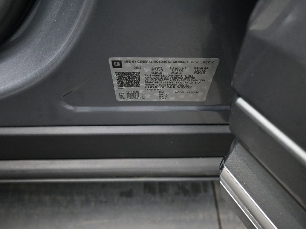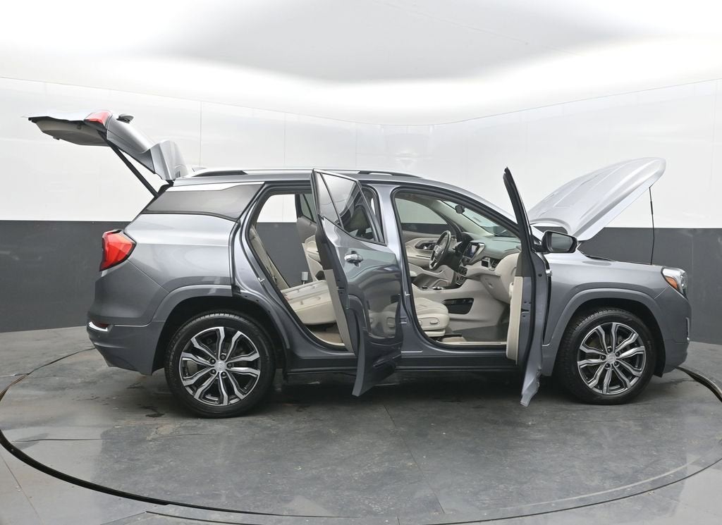 Satin Steel Metallic 2018 GMC Terrain 2018 GMC Terrain Denali Denali Clean CARFAX. FWD 9-Speed Automatic 2.0L Turbocharged 2 USB Data Ports, 2 USB Data Ports w/Auxiliary Input Jack, 3.17 Axle Ratio, 4-Wheel Disc Brakes, 6-Way Power Front Passenger Seat, 7 Speakers, 8-Way Power Driver Seat Adjuster, ABS brakes, Air Conditioning, Alloy wheels, AM/FM radio: SiriusXM, Apple CarPlay/Android Auto, Auto-dimming door mirrors, Auto-dimming Rear-View mirror, Automatic temperature control, Bluetooth® For Phone, Brake assist, Bumpers: body-color, Cargo Package (LPO), Compass, Delay-off headlights, Driver & Front Passenger Heated Seats, Driver door bin, Driver vanity mirror, Dual front impact airbags, Dual front side impact airbags, Electronic Stability Control, Emergency communication system: OnStar Guidance, Exterior Parking Camera Rear, Factory Installed Trailer Hitch, Four wheel independent suspension, Front anti-roll bar, Front Bucket Seats, Front Center Armrest, Front dual zone A/C, Front fog lights, Front Passenger 2-Way Power Lumbar, Front reading lights, Fully automatic headlights, Garage door transmitter, HD Radio, Heated door mirrors, Heated front seats, Heated steering wheel, Illuminated entry, Integrated Cargo Liner (LPO), License Plate Front Mounting Package, Low tire pressure warning, Memory seat, Navigation System, Occupant sensing airbag, Outside temperature display, Overhead airbag, Overhead console, Panic alarm, Passenger door bin, Passenger vanity mirror, Perforated Leather-Appointed Seat Trim w/Denali Logo, Power door mirrors, Power Driver Lumbar Control, Power driver seat, Power Liftgate, Power passenger seat, Power steering, Power windows, Preferred Equipment Group 5SA, Premium 7-Speaker Bose Sound System w/Amplifier, Radio data system, Radio: GMC Infotainment System w/Navigation, Rear anti-roll bar, Rear seat center armrest, Rear window defroster, Rear window wiper, Remote keyless entry, Retractable Cargo Shade, Roof rack: rails only, SD Card Reader, Security system, SiriusXM Satellite Radio, Speed control, Speed-sensing steering, Split folding rear seat, Spoiler, Steering wheel mounted audio controls, Tachometer, Telescoping steering wheel, Tilt steering wheel, Traction control, Trailering Equipment, Trip computer, Turn signal indicator mirrors, Variably intermittent wipers, Vertical Cargo Net (LPO), Wheels: 19 x 7.5 Ultra-Bright Machined Aluminum.