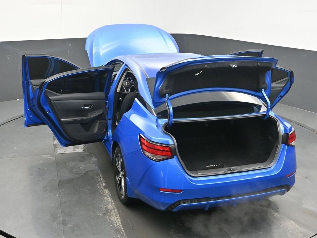 Electric Blue Metallic 2022 Nissan Sentra Odometer is 20329 miles below market average! 2022 Nissan Sentra SV SV CARFAX One-Owner. Clean CARFAX. FWD CVT with Xtronic 2.0L DOHC CVT with Xtronic, Black Cloth, 16 Alloy Wheels, 4-Wheel Disc Brakes, 6 Speakers, ABS brakes, Air Conditioning, Alloy wheels, AM/FM radio: SiriusXM, Auto High-beam Headlights, Blind Spot Warning, Body Colored Splash Guards (4-Piece), Brake assist, Bumpers: body-color, Carpeted Floor Mats w/Trunk Mat, Clear Rear Bumper Protector, Delay-off headlights, Door Sill Plates, Driver door bin, Driver vanity mirror, Dual front impact airbags, Dual front side impact airbags, Electronic Stability Control, Four wheel independent suspension, Front anti-roll bar, Front Bucket Seats, Front Center Armrest, Front reading lights, Fully automatic headlights, Heated door mirrors, Hide-A-Way Trunk Net, Illuminated entry, Knee airbag, Low tire pressure warning, NissanConnect featuring Apple CarPlay and Android Auto, Occupant sensing airbag, Outside temperature display, Overhead airbag, Overhead console, Panic alarm, Passenger door bin, Passenger vanity mirror, Power door mirrors, Power steering, Power windows, Premium Cloth Seat Trim, Radio data system, Radio: AM/FM w/RDS/MP3/Aux-In, Rear anti-roll bar, Rear Parking Sensors, Rear seat center armrest, Rear side impact airbag, Rear window defroster, Remote keyless entry, Security system, Speed control, Speed-sensing steering, Split folding rear seat, Steering wheel mounted audio controls, Tachometer, Telescoping steering wheel, Tilt steering wheel, Traction control, Trip computer, Trunk Package, Variably intermittent wipers, CVT with Xtronic, Black Cloth.