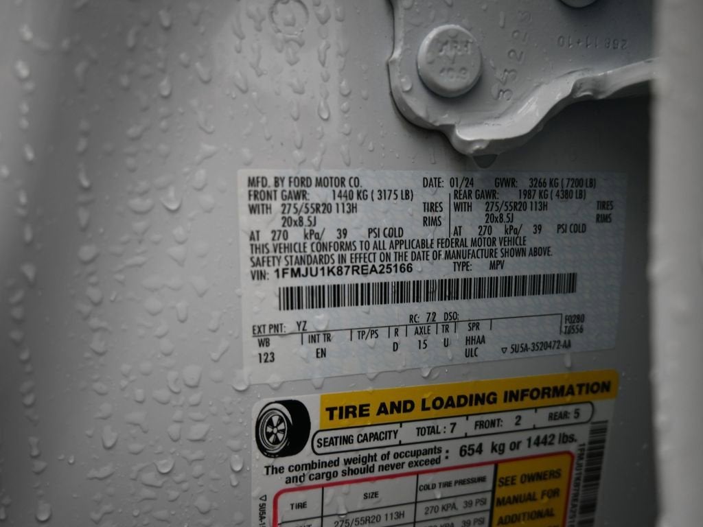 Oxford White 2024 Ford Expedition Odometer is 2786 miles below market average! 2024 Ford Expedition Limited Limited CARFAX One-Owner. Clean CARFAX. RWD 10-Speed Automatic EcoBoost 3.5L V6 GTDi DOHC 24V Twin Turbocharged 12 Speakers, 3.31 Axle Ratio, 3rd row seats: split-bench, 4-Wheel Disc Brakes, ABS brakes, Adjustable pedals, Air Conditioning, Alloy wheels, AM/FM radio: SiriusXM with 360L, Auto High-beam Headlights, Auto-dimming door mirrors, Auto-dimming Rear-View mirror, Automatic temperature control, Brake assist, Bumpers: body-color, Compass, Delay-off headlights, Driver door bin, Driver vanity mirror, Dual front impact airbags, Dual front side impact airbags, Electronic Stability Control, Emergency communication system: SYNC 4 911 Assist, Equipment Group 301A Mid Package, Exterior Parking Camera Rear, Four wheel independent suspension, Front anti-roll bar, Front Bucket Seats, Front Center Armrest, Front dual zone A/C, Front fog lights, Front reading lights, Fully automatic headlights, Garage door transmitter, Heated & Ventilated Leather Front Captain's Chairs, Heated door mirrors, Heated front seats, Heated rear seats, Heated steering wheel, Illuminated entry, Leather steering wheel, Low tire pressure warning, Memory seat, Navigation system: Connected Navigation, Occupant sensing airbag, Outside temperature display, Overhead airbag, Overhead console, Panic alarm, Passenger door bin, Passenger vanity mirror, Pedal memory, Power door mirrors, Power driver seat, Power Liftgate, Power moonroof, Power passenger seat, Power steering, Power windows, Radio data system, Radio: B&O Sound System by Bang & Olufsen, Rain sensing wipers, Rear air conditioning, Rear anti-roll bar, Rear reading lights, Rear window defroster, Rear window wiper, Reclining 3rd row seat, Remote keyless entry, Security system, SiriusXM w/360L, Speed control, Speed-sensing steering, Speed-Sensitive Wipers, Split folding rear seat, Spoiler, Steering wheel memory, Steering wheel mounted audio controls, SYNC 4 w/Enhanced Voice Recognition, Tachometer, Telescoping steering wheel, Tilt steering wheel, Traction control, Trip computer, Turn signal indicator mirrors, Variably intermittent wipers, Ventilated front seats, Voltmeter, Wheels: 20 Bright Machined Aluminum.
