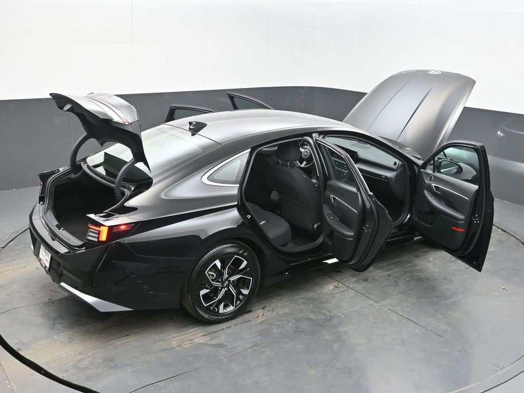 Abyss Black 2025 Hyundai Sonata 2025 Hyundai Sonata SEL SEL CARFAX One-Owner. Clean CARFAX. FWD 8-Speed Automatic I4 Black Cloth, 17 x 7.0J Aluminum Alloy Wheels, 4-Wheel Disc Brakes, 6 Speakers, ABS brakes, Air Conditioning, Alloy wheels, AM/FM radio: SiriusXM, Apple CarPlay & Android Auto, Auto High-beam Headlights, Automatic temperature control, Brake assist, Bumpers: body-color, Cloth Seating Surfaces, Delay-off headlights, Driver door bin, Driver vanity mirror, Dual front impact airbags, Dual front side impact airbags, Electronic Stability Control, Emergency communication system: Bluelink+, Exterior Parking Camera Rear, Four wheel independent suspension, Front anti-roll bar, Front Bucket Seats, Front Center Armrest, Front dual zone A/C, Front reading lights, Fully automatic headlights, Heated door mirrors, Heated Front Bucket Seats, Heated front seats, Illuminated entry, Knee airbag, Low tire pressure warning, Occupant sensing airbag, Option Group 01, Outside temperature display, Overhead airbag, Overhead console, Panic alarm, Passenger door bin, Passenger vanity mirror, Power door mirrors, Power driver seat, Power steering, Power windows, Radio data system, Radio: AM/FM/HD/SiriusXM, Rear anti-roll bar, Rear seat center armrest, Rear side impact airbag, Rear window defroster, Remote keyless entry, Security system, Speed control, Speed-sensing steering, Speed-Sensitive Wipers, Split folding rear seat, Steering wheel mounted audio controls, Tachometer, Telescoping steering wheel, Tilt steering wheel, Traction control, Trip computer, Variably intermittent wipers, Black Cloth.